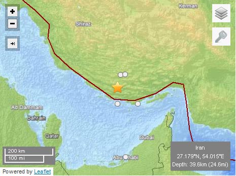今日(6日)上午伊朗地震了,中新網(wǎng)電據(jù)外媒報(bào)道,伊朗Gerash市附近在當(dāng)?shù)貢r(shí)間上午6點(diǎn)27分14秒發(fā)生了里氏5.1級(jí)地震,地震震源位于伊朗Gerash市西南55公里的地方,為北緯27.179°,東經(jīng)54.015°,地震震源深度為39.6公里。地震受災(zāi)情況還在統(tǒng)計(jì)中。