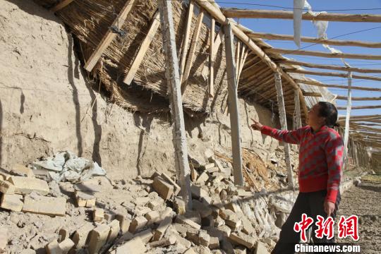 若羌縣地震情況 12月7日若羌縣5.1級地震千余房間開裂,9日,若羌縣吾塔木鄉庫爾貴村大棚種植戶在查看受損情況。王若丹攝