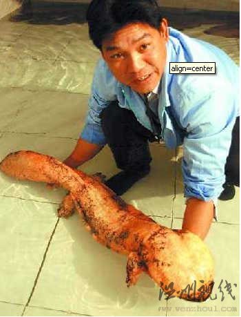溫州在線動物世界訊,江西井岡山長古嶺水溪里意外捕獲到一條黃金娃娃魚,現(xiàn)身長有兩尺左右,重約1.5公斤。這在江西省還是首次發(fā)現(xiàn),全國也是極其罕見。娃娃魚一般都是黑色或褐色的,黃金娃娃魚可能是因為基因突變,所以出現(xiàn)的概率非常低。
