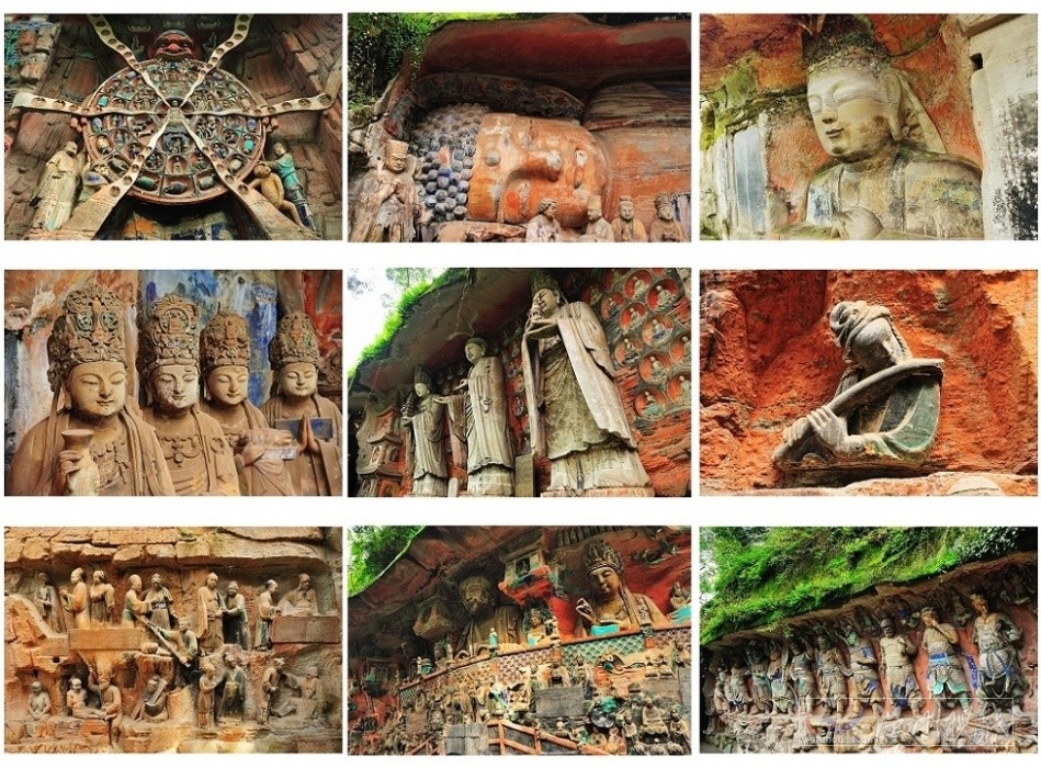 寶頂山旅游景點圖片-大足寶頂山 寶頂山摩崖造像,大足石刻位于中國西南部重慶市的大足縣境內,這里素有「石刻之鄉」的美譽。寶頂山摩崖造象位于大足縣城東北15公里。造象開鑿于南宋淳熙六年(1179年),歷時70余年。創始人為宋蜀中名僧趙智鳳。大足石刻最初開鑿于初唐永徽元年(公元650年)(尖山子摩崖造象),歷經晚唐、五代(960~1278年),盛于兩宋(96零~1278年),明清時期(14~19世紀)亦有所增刻,最終形成了一處規模龐大,集中國石刻藝術精華之大成的石刻群,其內容為釋儒道叁教合一,堪稱中國晚期石窟藝術的代表,也是中國南方石窟藝術中的頂尖之作。大足石刻群共包括石刻造象70多處,總計10萬余尊,其中以北山、寶頂山、南山、石篆山、石門山五處最為著名和集中。
