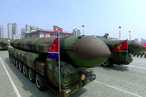 美航母是廢物:朝鮮在閱兵式上展示了疑似新型洲際彈道導(dǎo)彈的武器。