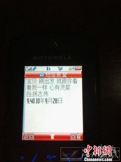 舉報人還列舉了“楊志偉”在和自己交往期間所發的短信。如2010年9月份就有四條:“只喝了一杯紅酒,寶寶”;“寶貝,就跟你看著我一樣,心有靈犀”;“真想你,尤其是今天這個夜晚”;“剛吃飯,領導們還在吃,我正拿出手機準備給你發信息,就收到你的信息,想你”等等,態度暖昧。