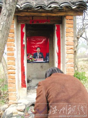 網(wǎng)友發(fā)出的老人供奉縣長圖片