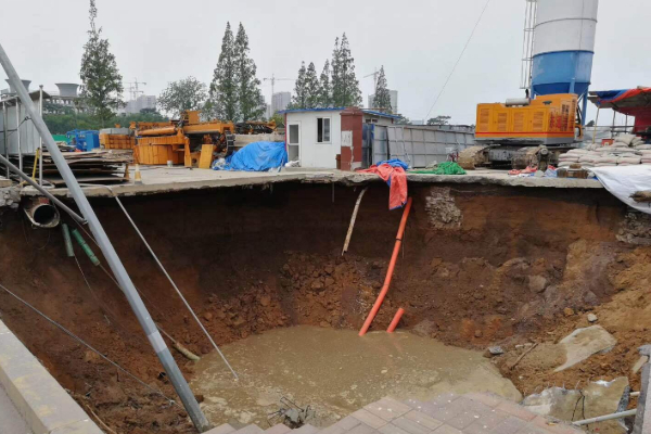 7月4日,青島地鐵1號線勝利橋站施工圍擋處發生塌陷,大坑直徑約10米。據青島地鐵消息,塌陷處下方無施工人員,一名地面施工人員失聯,現場正在全力以赴組織搜救和搶險。記者從青島市人民政府總值班室處了解到,截至13時54分,尚未接到失聯人員被找到的報告。