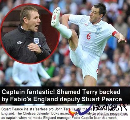 “偷腥門”之后特里是否能繼續(xù)當(dāng)國家隊(duì)隊(duì)長是球迷們最關(guān)心的話題,切爾西鐵衛(wèi)周五要和卡佩羅當(dāng)面談及此事。當(dāng)然此前有報(bào)道稱,卡佩羅希望特里自覺的將自己的隊(duì)長袖標(biāo)摘除,不過誰也不知道卡帥到底在想什么。他的助手也是英格蘭U21國家隊(duì)教練斯圖爾特·皮爾斯(Stuart Pearce)卻深信特里依然會(huì)繼續(xù)擔(dān)任國家隊(duì)隊(duì)長,就憑他和卡佩羅的關(guān)系,我們也能略知一二,盡管他也強(qiáng)調(diào)一切都要等卡佩羅自己決定。