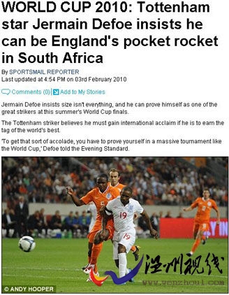 盡管魯尼和赫斯基似乎是卡佩羅南非的首選鋒線組合,但熱刺射手速度是他的利器。盡管身材不高,但他深信速度優勢一定可以打動卡佩羅。同時,他也要向卡帥證明,塊頭大小并不能代表一切,他要爭做英格蘭未來的“袖珍火箭”。