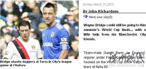 “我真的愿意看到布里奇能夠去南非,時間會改變人的主意,我希望這一次也會應驗。”巴里繼續勸說道。“在他心底,他可不希望再坐著等上四年,是的,過后他或許會因此而后悔,我確定他內心其實是矛盾的。我們都在等他改變主意,因為世界杯可不是歐冠,假如他失去了這一次機會,恐怕很難等得了下一次。”