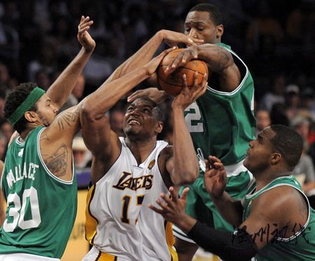 比賽過(guò)程中拜納姆多次憑借自己的身高優(yōu)勢(shì)在籃下瘋狂肆虐,攻防兩端他都打出了令人吃驚的能量,但凡有機(jī)會(huì)他就會(huì)上演大力暴扣好戲,防守端的7次封蓋更是超出凱爾特人全隊(duì)統(tǒng)計(jì)兩倍不止,因?yàn)橛兴拇嬖冢岁?duì)內(nèi)線全面占據(jù)優(yōu)勢(shì),他們整場(chǎng)造成凱爾特人四大內(nèi)線足足17次犯規(guī),而自己卻貢獻(xiàn)出了13次封蓋,如果不是朗多和雷-阿倫有如神助的話湖人隊(duì)恐怕已經(jīng)手握2-0的領(lǐng)先優(yōu)勢(shì)了,但既便如此,他們還是看到了征伐北岸花園球場(chǎng)的取勝可能,賽后拜納姆呆在更衣室里久久都不愿意出來(lái),他說(shuō)全隊(duì)上下所有人都很沉默,就等著兩天后在凱爾特人主場(chǎng)反戈一擊,作為內(nèi)線絕對(duì)主力的他更是責(zé)無(wú)旁貸,因?yàn)橹挥兴图铀鳡柎虺隽烁杏X,湖人隊(duì)才能夠盤活整個(gè)的進(jìn)攻體系。從這個(gè)角度上看拜納姆可以說(shuō)是湖人隊(duì)最后的曙光了,至少他和加索爾能夠在對(duì)位中占據(jù)絕對(duì)優(yōu)勢(shì),外線不管是德里克·費(fèi)舍爾、羅恩·阿泰斯特甚至是科比,都沒辦法做到這一點(diǎn)。