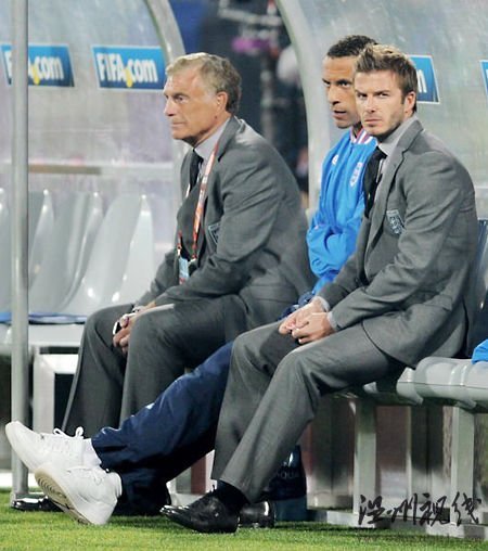 北京時間6月13日,世界杯小組賽C組將展開爭奪,英格蘭與美國隊在南非的皇家巴弗肯球場迎來對決,開場僅僅4分半鐘,隊長杰拉德便完成破門,英格蘭取得夢幻開局。場邊的替補席上,因傷無緣征戰世界杯的小貝和費迪南德并肩觀戰,,兩位昔日國家隊和曼聯隊友相談甚歡,他們的存在是對場上將士的一種鼓舞。