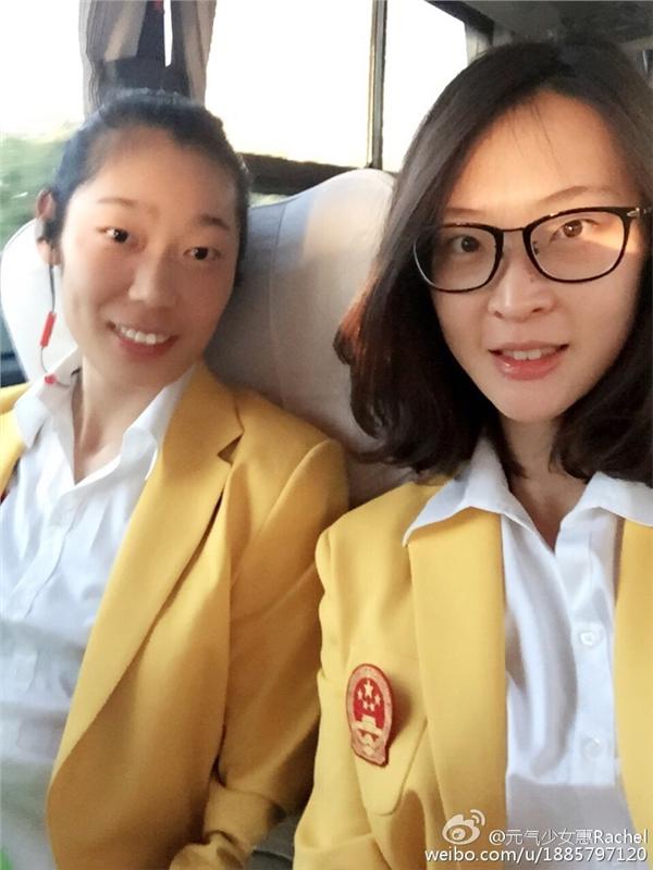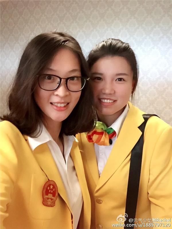 在惠若琪和朱婷的合照中,惠若琪還配上了一張兩人的漫畫(huà)稱(chēng)右邊的小人是自己因?yàn)楸茸筮叺陌装雮€(gè)色號(hào)。在與張夢(mèng)雪的合照中,兩人還原了“張氏冷漠臉”,惠若琪配文到:“這次是冷漠臉創(chuàng)始人@張夢(mèng)雪_0206 哈哈哈 其實(shí)笑起來(lái)很好看好嗎”。