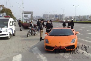 前日下午4時,溫州交警在龍灣濱海大道設卡巡查時,遠遠看到一輛"蘭博基尼"跑車疾駛而來,交警觀察到,該車車前并未懸掛車牌,便攔下該車進行檢查。經(jīng)查,該車證件狀況正常,在車后位置也有懸掛車牌,車號很"靚":"9999D"。