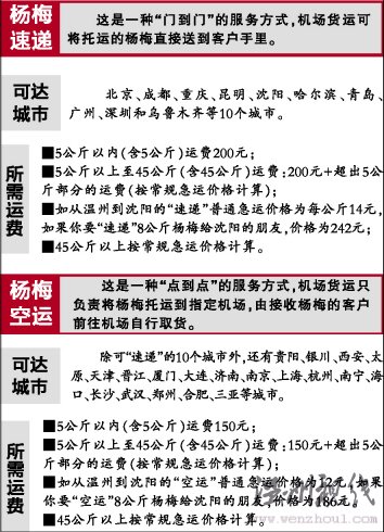機(jī)場(chǎng)方面說,市民可自購楊梅后,到永強(qiáng)機(jī)場(chǎng)貨運(yùn)營(yíng)業(yè)部或永強(qiáng)機(jī)場(chǎng)客貨運(yùn)營(yíng)業(yè)部和市區(qū)錦繡路民航售票處辦理手續(xù);也可由機(jī)場(chǎng)貨運(yùn)方面提供楊梅農(nóng)戶電話,市民再和楊梅農(nóng)戶取得聯(lián)系,由農(nóng)戶把楊梅送到機(jī)場(chǎng)代辦"速遞"或"空運(yùn)"手續(xù),相關(guān)手續(xù)要提前130分鐘辦理。如果需要"速遞"或"空運(yùn)",最好先查詢清楚航班起飛時(shí)間,再購買楊梅或代買楊梅。
