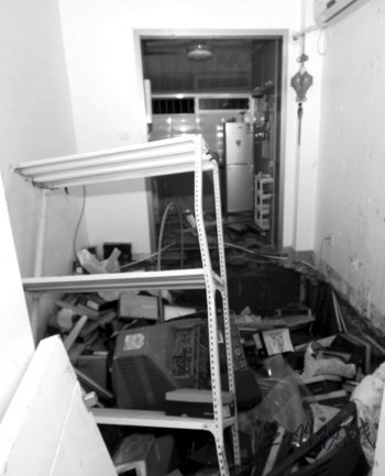 記者現場查看發現,事故地點位于溫州市區黃龍四區康興路177號,是臨街的一處住宅,該住宅一樓前半間開作鞋店,后半間作為房東自己的廚房。臨街半間店面一切正常,作為廚房的后半間已成一個一米多深的大坑,里面有餐桌等物品,記者現場還能聞到濃濃的煤氣味,溫州燃氣公司的工作人員隨后也趕到現場檢修。