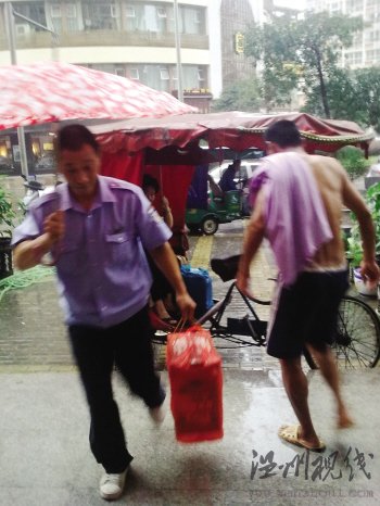 記者采訪時,突然下起了大雨,這時一名大媽領著一位小姑娘,隨身還帶著大包小包,坐著三輪車到了樓下,李志其趕忙拿起雨傘跑了過去,用雨傘將大媽和小姑娘接了進來,還幫忙將她的東西搬到了樓上。據業主們介紹,李志其兩年來都是這么做的。