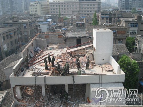 剛搬來附近不久的丁先生說:“該處業主在未經有關部門審批情況下私自違建,當時該處共有4層,均為框架木質結構,1層是店面,2層是按摩中心,3層至4層為旅館。去年6月份該處曾發生過一起火災,當時起火點是在4樓旅館內部閣樓。在此次事故后,業主曾某并沒有吸取教訓,對燒毀部分進行改建,換成鋼架結構進行加固,并把樓層抬高了1層。”而在今年1月份,鹿城區城市管理與行政執法局接到群眾投訴,實地勘查了現場,并對該處業主發放了《限期整改通知書》,對方并未及時拆除違建,并多次來到執法部門恐嚇執法人員。70歲的周老太太說:“45號樓火災消防隱患嚴重,如今拆除了,讓我們住在這附近的人生活也踏實點。”
