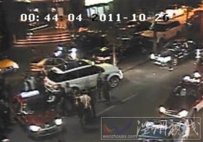 據交警介紹,事故發生在昨天凌晨,人民東路東聯大廈前,當時一輛白色路虎越野車倒車時,屁股撞上了一輛的士的左后側,安徽籍的哥申某當即下車跟對方理論,要求對方駕駛員將車往前開一下,看看損失的情況,如果問題不大,就算了。可當路虎越野車移到前面時,情勢陡轉直下。