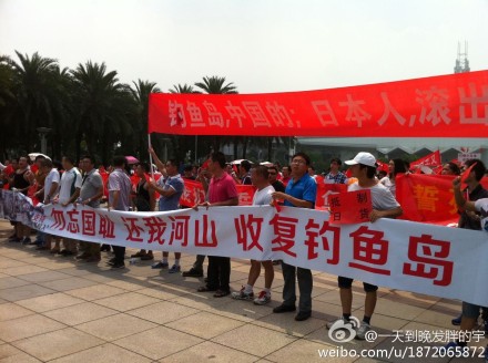 溫州市民的愛國熱情被激發了,拉上橫幅在世紀廣場和市政府前舉行小型的游行示威活動。橫幅上有寫“狗日的滾出中國,打到美日帝國主義”,“捍衛釣魚島,全民抵制日貨”,“打倒小日本,還我釣魚島”等等標語,可見溫州人的愛國熱情還是很高的。