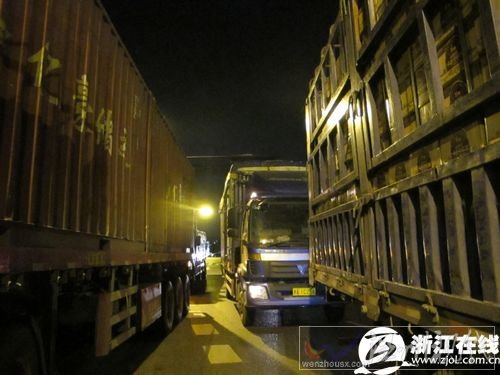 記者在現場看到,僅過了15分鐘,就有8輛大貨車被交警攔下,停在路邊接受檢查。