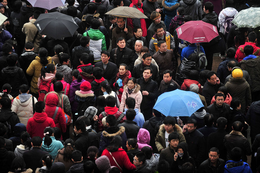 2月27日,武漢,華中科技大學自主招生考試結束,學生走出考場,送考的家長和考生匯集成巨大的人流。2月27日,華中科大、武漢大學、華中農業大學自主招生考試同天開考。而在前一天,4所武漢高校和由同濟大學等9校組成的“卓越聯盟”也同天舉行了自主招生考試。2天時間里武漢共舉行了8場自主招生考試。