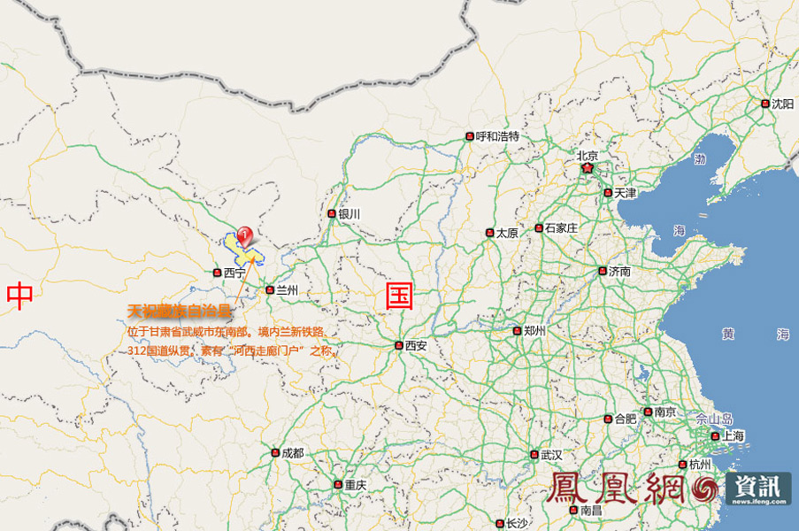 天祝縣位于甘肅武威市東南部。人民網武威5月13日電 據媒體記者消息,天祝藏族自治縣某信用社今日發生爆炸事件,人員傷亡財產損失等具體情況尚不清楚。據初步了解,今天早上9點左右,天祝縣信用聯社全體職工開會期間,有人點燃“汽油彈”。