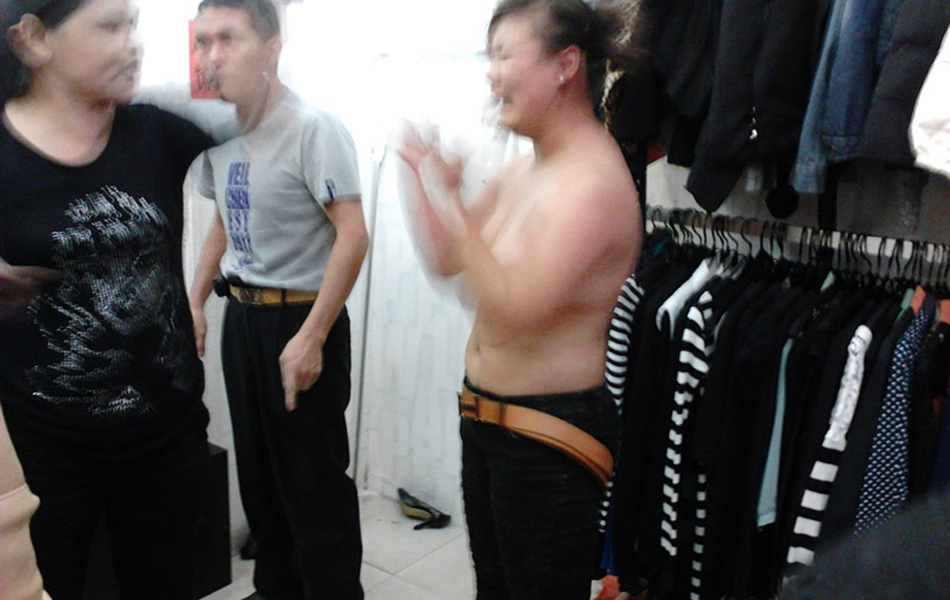事發(fā)浙江溫嶺一商場,話說一個女飛賊在商城行竊被商場工作人員抓個正著,從照片背景看,應(yīng)該是服裝商場,女小偷被抓住以后,在和工作人員揪扯中被脫衣,偷衣服最后落得被脫光衣服,真是因果報應(yīng)啊。不用說,女子商場行竊被抓,揪扯中被脫衣肯定很多人譴責商家過分,其實這種小偷應(yīng)該脫光游街才對,都是現(xiàn)在什么狗屁人權(quán),才導(dǎo)致社會這么混亂,女小偷不去商場行竊誰會把你脫光呢?遵紀守法的人都希望法律更加嚴厲,這樣才能真正保護良民。
