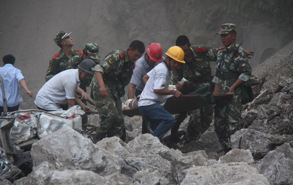 云南邵通地震圖片:9月7日11時19分,云南省昭通市彝良縣與貴州省畢節市威寧縣交界發生5.7級地震,震源深度14公里。圖為9.7云南彝良地震救援現場。