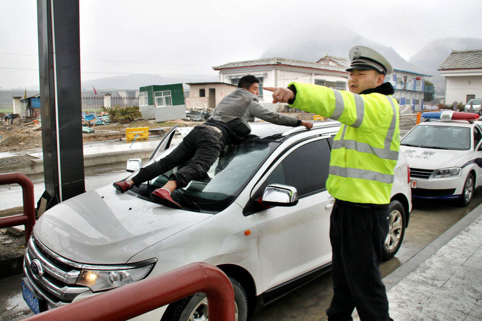 貴州安順債主要債不成差點丟了性命 被欠債的頂在車上狂飆