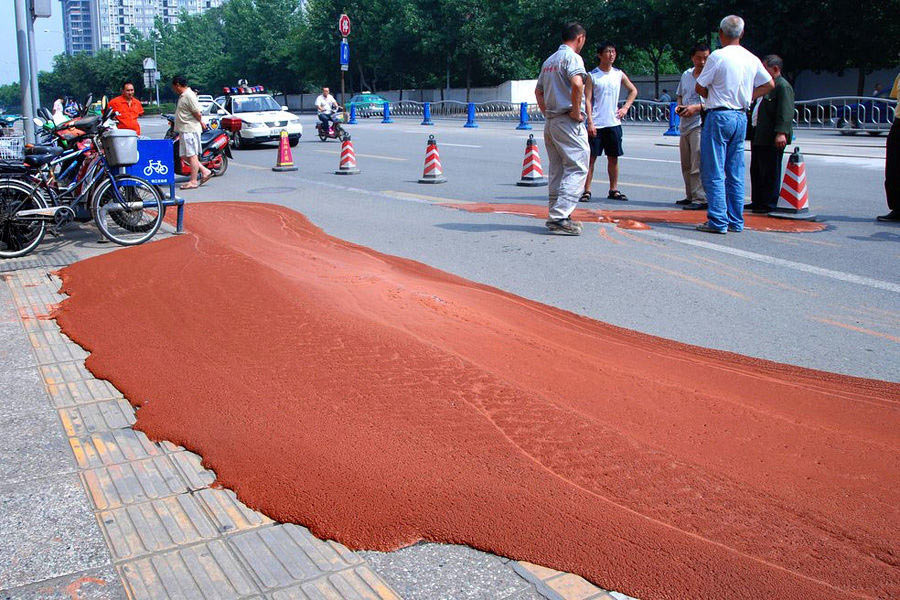 成都鬧市路面突然凸起 噴出褐色泥漿 成都 泥漿