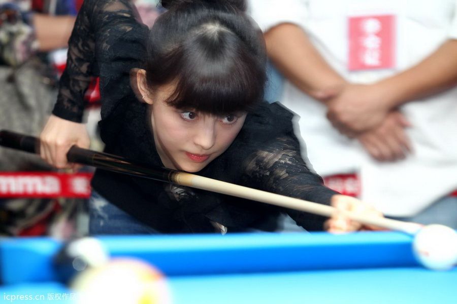 九球天后潘曉婷出席臺球館典禮秀球技 黑色蕾絲鏤空上衣秀身材