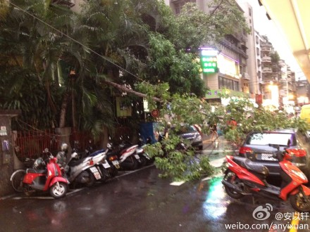 今年第九號臺風蘇拉帶來強降水,途徑區域累積降水量可能超1米。臺灣已刮起了大風,樹枝都被吹倒了,臺灣的朋友們盡量不要出門。