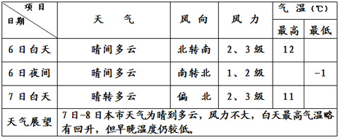 生活提示:6日白天到夜間天氣晴好,風(fēng)力不大,但早晚氣溫較低,注意防寒保暖。