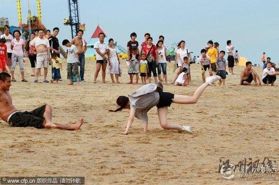 廈門,張紀中導演的電視劇《空姐日記》14日在廈門拍攝探班。新版《水滸》潘金蓮扮演者、新生代女星甘婷婷,在沙灘上穿裙子做后空翻,為博取胡兵好感,不會游泳的她跳入水中被淹,被胡兵救起,渾身濕透曲線盡顯,二人在水中上演濕身糾纏的火辣戲碼。