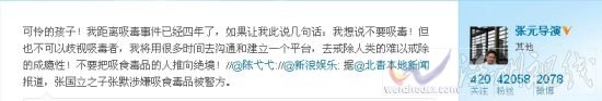 張元微博呼吁不要歧視吸毒者
