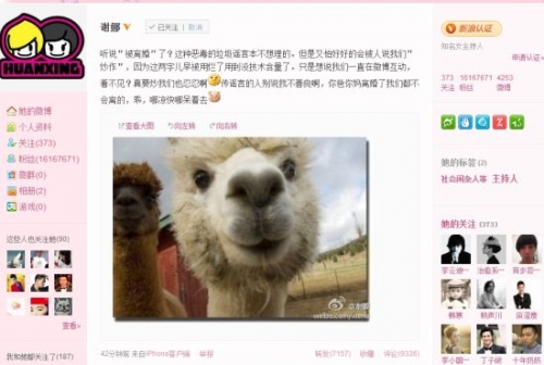 微博帖“草泥馬”是罵人,小媳婦罵人還把人家爸媽都抬出來罵了,是不是有點象潑婦罵街?潑婦罵街聽到的也只有一條街上的人,而謝娜在微博罵人,看到的是全世界的網(wǎng)民,是不是比潑婦更潑?