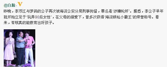 李公子出身于1996年4月,他自己也是90后,所以爆料稱“李天一早年就開始玩弄90后女性”說法也是合理的,獲得“海淀銀槍小霸王”的榮譽稱號實至名歸。