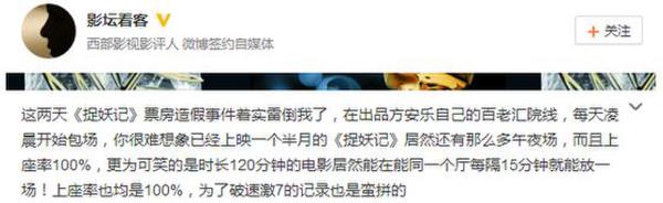 曝捉妖記票房造假
